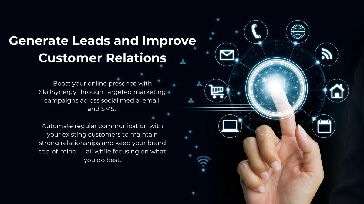 Boost your online presence with Skill Synergy through targeted marketing campaigns across social media, email, and SMS.